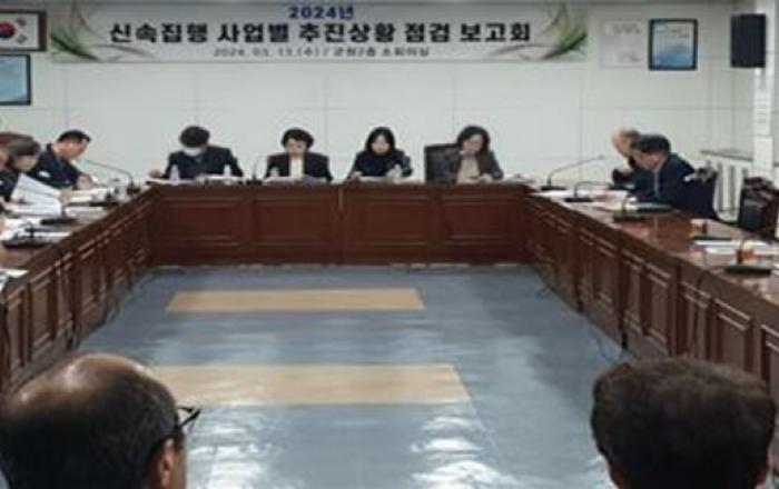신속집행 사업별 추진상황 점검 보고회단양군은 신속집행 대상액 3,564억 원 중 54.4%인 1,940억 원을 올해 상반기 집행목표액으로 설정해 지역경제 활성화를 위해 총력을 다하고 있다.군은 올해 상반기 신속집행이 고물가·고금리 장기화에 따른 소비 둔화와 지역경제 침