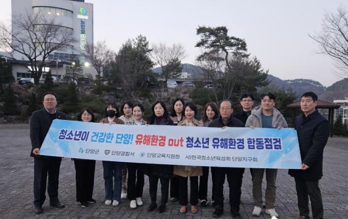 민·관 합동 청소년 유해환경 합동 점검 실시단양 경찰서(서장 박희규)는 3.14.18:30 경 단양읍 일대에서 민·관 합동 청소년 유해환경 합동 점검을 실시 했다.이날 합동점검에는 단양경찰서,단양군청, 단양교육지원청,사)한국청소년 육성회 단양지구회 회원이 함께 했다이