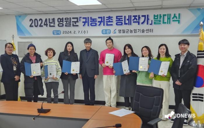▲ 귀농귀촌 동네작가 발대식영월군이 지난 7일 올 한해 도시민 귀농·귀촌 유치 홍보를 위한 ‘귀농·귀촌 동네작가’ 발대식을 개최하였다. 귀농·귀촌 동네 작가는 농촌지역에 거주하는 주민들 동네 작가로 선정하여 농촌 생활, 지역 경관, 공동체 활동 등 농촌지역만의 차별화된
