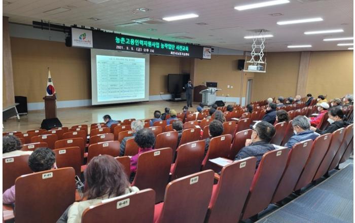 ▲ 농작업단 사전교육 모습JD News 이용희 기자 = 제천시는 농촌 일손부족 문제 해소를 통한 안정적 영농활동 지원을 위해 농촌고용인력지원사업 인력중개를 3월부터 본격 추진하고 있다. ‘농촌인력중개사업’은 농업 분야에 특화된 인력수급 지원체계 구축을 통해