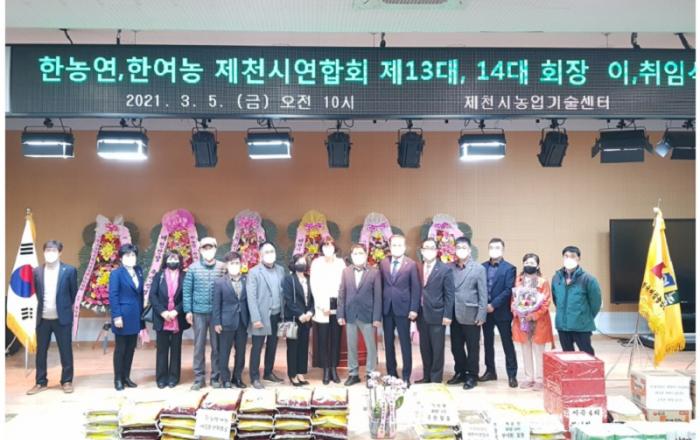 ▲ 이취임행사사진JD News 이용희 기자 = 한농연제천시연합회(이하 한농연)와 한여농제천시연합회(이하 한여농)가 5일 제천시농업기술센터 농업인교육장에서 합동 회장 이·취임식을 가졌다. 이날 제천시 한농연(제13·14대) 및 한여농(제13·14대) 이