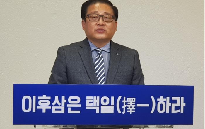 ▲2일 시청 프리핑실에서 성명서를 발표하는 전 더불어 민주당 중앙 정책위원회 부의장 장인수JD News 이용희,유소진 기자 =더불어 민주당 전 장인수 중앙당 정책위 부의장은 이후삼 제천·단양 지역위원장을 향해 “위원장과 인천공항철도 사장 중 택일(擇一)하라”고 요구했