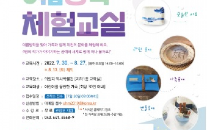 방학 때마다 아이들을 위한 프로그램을 운영 중인 충북 제천시 의림지 역사박물관은 여름방학을 맞아 가족과 함께 즐기는 문화체험교실을 운영한다.본 프로그램은 오는 7월 30일부터 8월 27일까지 매주 토요일 마다 의림지 역사박물관 교육실에서 진행되며, 제천국제음악영화제(8