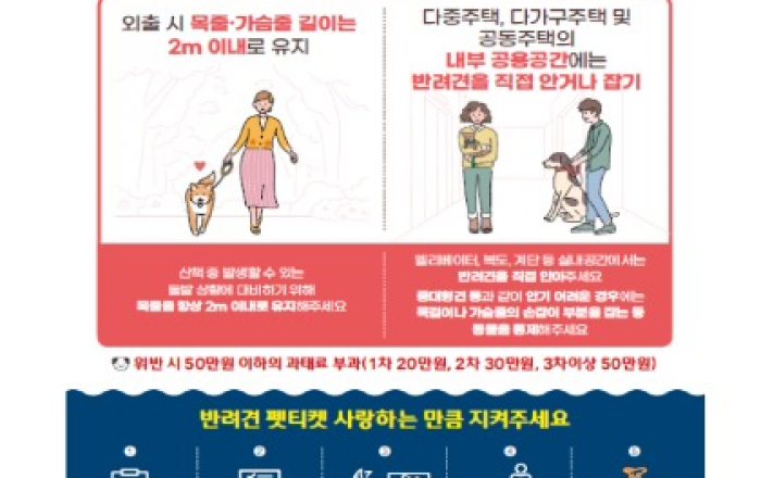강원 원주시 농업기술센터가 오는 3월 1일부터 31일까지 한 달간 주요 공원 및 산책로 이용 반려견 보호자를 대상으로 목줄(가슴줄) 2m이내 착용 의무사항에 대한 홍보·계도 기간을 운영한다.28일 원주농업기술센터에 따르면 올해 2월 11일 개정된 '동물보호법 시행규칙'
