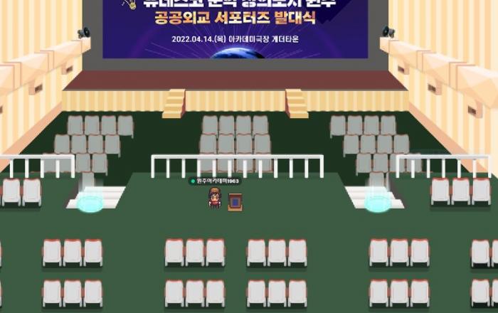 ▲ 아카데미극장 게더타운(메타버스 발대식 장소) 사진강원 원주시는 오는 14일 ‘유네스코 문학 창의도시 원주 공공외교 서포터즈 발대식’을 메타버스 플랫폼인 아카데미 게더타운에서 개최한다고 밝혔다.이번 서포터즈는 연세대학교 미래캠퍼스 국제관계학 관련 수업을 듣는 학생 3