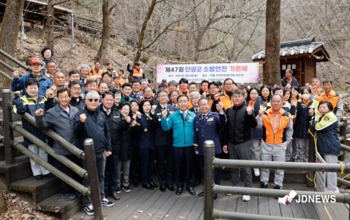 ▲ 소방안전기원제단양군 의용소방대는 지난 5일 다리안관광지 내 산신각에서 ‘제47회 단양군 소방안전기원제’를 개최했다.이날 행사에는 김문근 단양군수, 엄재웅 단양소방서장을 비롯해 남녀의용소방대원 등 100여 명이 참석해 군민의 안전과 소방가족의 무사고를 기원했다.소방안