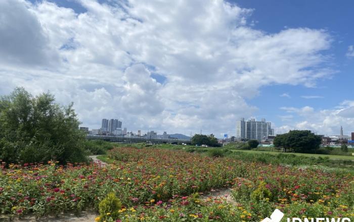 ▲ 원주천 둔치 '백일홍길'원주 출신 가수이자 원주시 관광 홍보대사인 가수 조명섭의 공식 팬카페 ‘에밀스’가 가수 데뷔 1,000일(8월 18일)을 기념해 원동 남산공원 일대에서 백일홍 1,000송이 가드닝 행사를 추진한다.이번 행사는 8월 12일 오후 1시 30분 에
