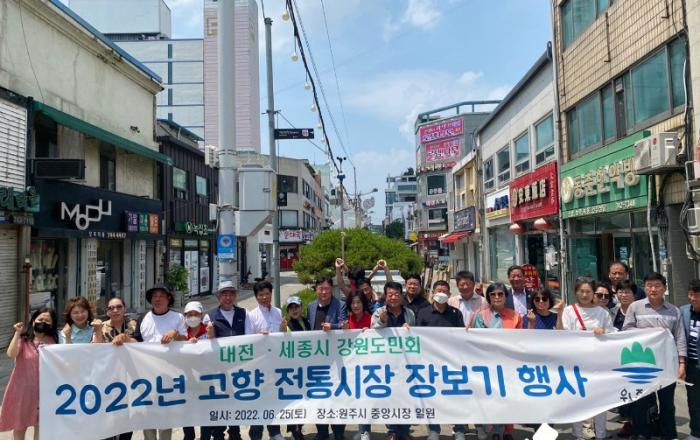 ▲경제진흥과_출향도민 전통시장 장보기행사대전·세종시 강원도민회(회장 최현일) 임원 25명은, 지난 25일 중앙동 전통시장 일대를 방문해 장보기 행사에 나섰다.임원 25명은 고향의 지역경제 활성화를 위해 “온누리 상품권”을 이용해 중앙동 전통시장 일대에서 2시간에 걸쳐