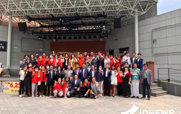 ▲ 민족통일협의회 6.25를 아시나요민족통일원주시협의회(회장 박정균)는 지난 25일 중앙동 문화의거리에서 회원 및 시민 등 약 300여 명이 참석한 가운데‘6.25를 아시나요?’행사를 개최했다.이번 행사에서는 6.25 전쟁의 참상을 담은 사진전과 함께 민족통일 발전에