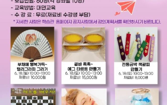 ▲어깨동무 행복 더하기 일일특강 수강생 추가 모집 안내문강원 원주시 평생교육원 학습관에서는 원주시 장애인과 함께하는 ‘어깨동무 행복 더하기’ 일일특강 수강생을 6월 7일부터 6월 10일까지 추가 모집한다고 밝혔다.추가 모집하는 강좌는 , , , , , 등 6개 강좌이