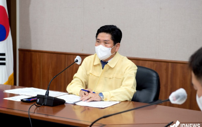 ▲ 김창규 시장은 5일 오전 태풍 힌남노로 인한 지역내 피해를 최소화하기 위해 긴급대책회의에 나섰다.충북 제천시는 제11호 태풍 ‘힌남노’로 인한 피해를 최소화하기 위해 5일 오전 긴급대책회의를 개최했다.이날 김창규 제천시장은 태풍 진행 및 대처상황에 대한 보고를 받고