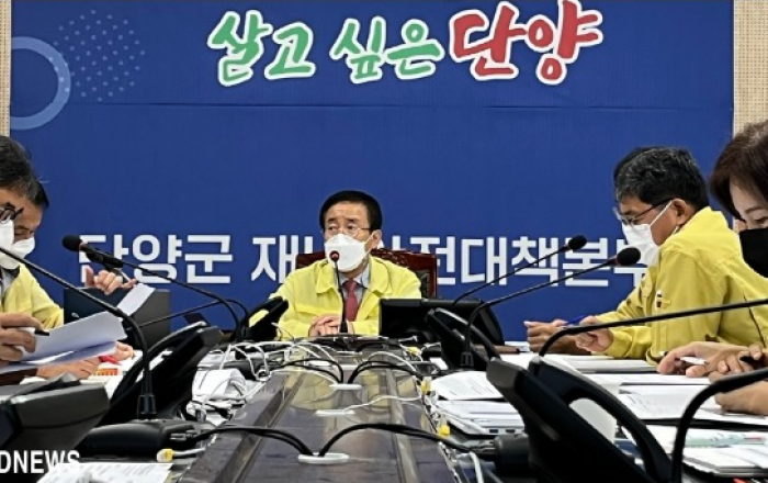 ▲ 김문근 단양군수가 지난 4일 군청 재난상황실에서 태풍 힌남노로 인한 지역내 피해발생 최소화를 위해 긴급대책회의를 개최했다.충북 단양군은 지난 4일 군청 재난상황실에서 김문근 군수 주재로 제11호 태풍 '힌남노'북상에 따른 긴급대책회의를 가졌다.이날 회의는 태풍 힌남