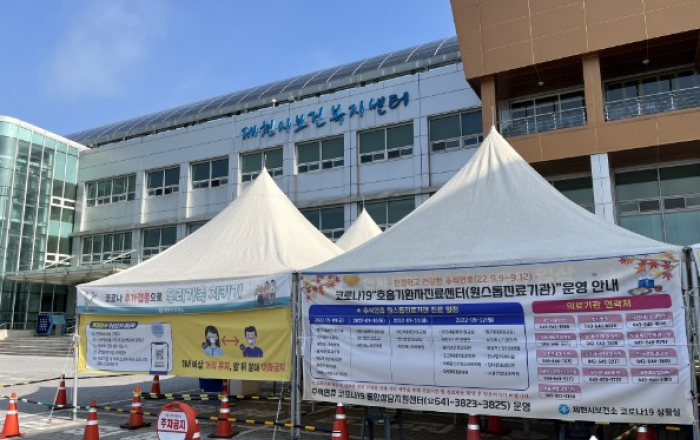 ▲ 보건소 선별진료소 모습충북 제천시가 안전하고 건강한 명절을 위해 추석 연휴기간(9~12일)에도 보건소 선별진료소 정상 운영(오전 10시~오후 1시)과 신종 코로나바이러스 감염증(코로나19) 진료대응반 유지 및 비상방역·진료체계를 가동한다.코로나19 비상방역