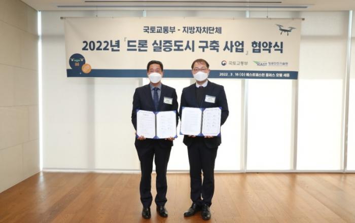 ▲원주시 2022년 드론 실증도시 구축사업 협약식강원 원주시는 국토교통부에서 주관하는 ‘2022년 드론 실증도시 구축 사업’에 최종 선정됐다.이번 사업에 33개의 지자체가 지원해 최종 9개 지자체가 선정됐으며, 강원도에서는 유일하게 원주