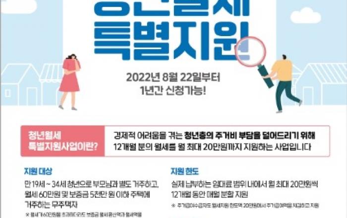 충북 제천시가 오는 22일부터 저소득 청년층에게 1년간 월 최대 20만 원의 임차료를 지원하는 ‘청년월세 한시 특별지원사업’을 시행한다고 밝혔다.본 사업은 신종 코로나바이러스 감염증(코로나19) 장기화로 인한 경제상황 악화로 인해 경제적 어려움을 겪고 있는 저소득 청년