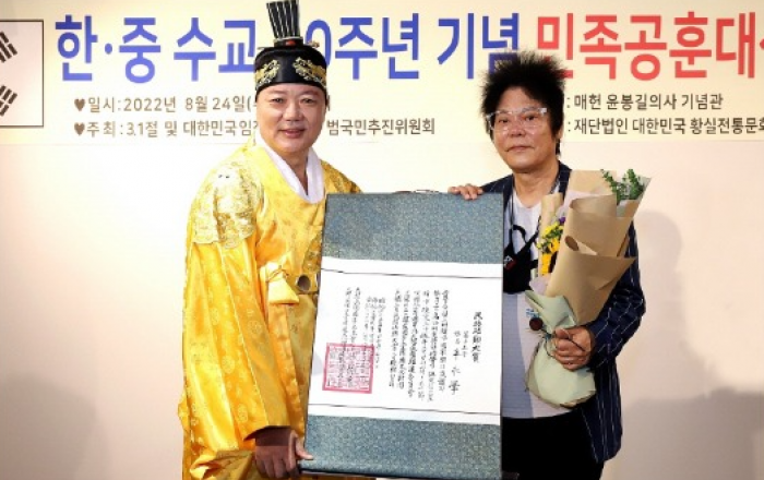 한중 수교 30주년 기념 민족공훈대상 시상식이 지난 24일 오후 3시경 매헌윤봉길의사기념관에서 개최됐다.이번 한중 수교 30주년 기념 민족공훈대상 시상식은 3·1절 및 대한민국임정 100주년기념 범국민추진위원회가 주최했으며, 재단법인 대한민국 황실전통문화재단이 주관했다