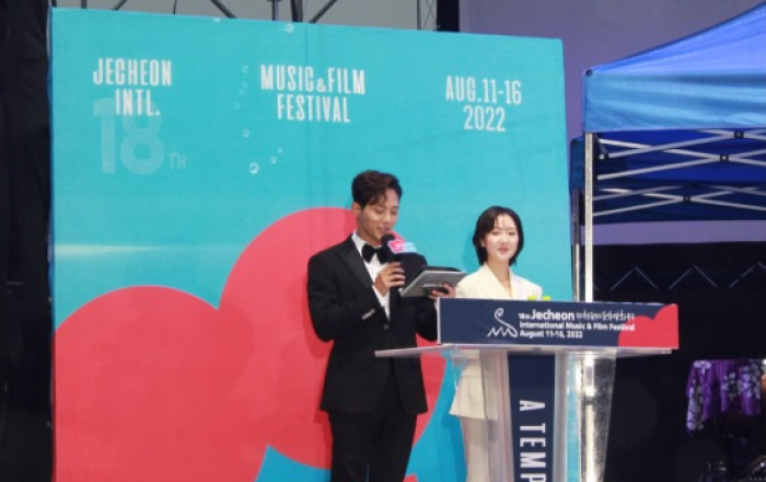 ▲ 16일 오후 7시 의림지 일원서 제천국제음악영화제 폐막식이 진행됐다.▲ 제18회 제천국제음악영화제 폐막식 사회를 맡은 배우 강준규, 오하늬 모습아시아 최대 영화음악 페스티벌의 정체성을 담은 제18회 제천국제음악영화제가 16일 폐막식을 끝으로 6일간의 일정을