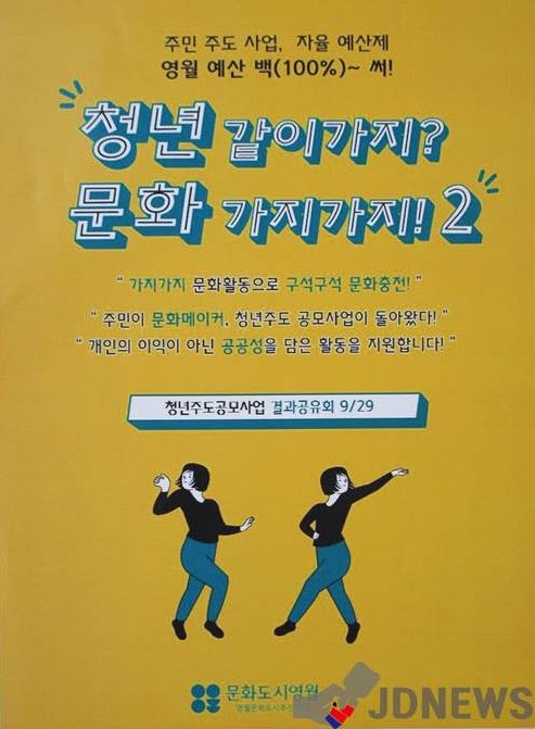 JD News 석의환기자 = 강원도 영월군은 29일 아르코공연연습센터@영월에서 청년주도 공모사업 시즌2 <청년 같이가지? 문화 가지가지!> 결과공유회를 개최하였다.
