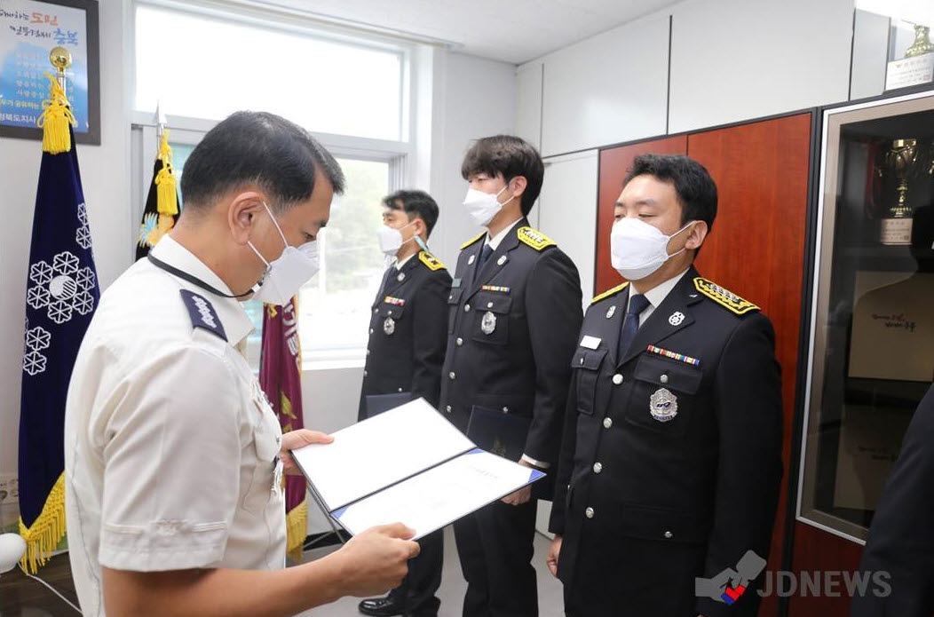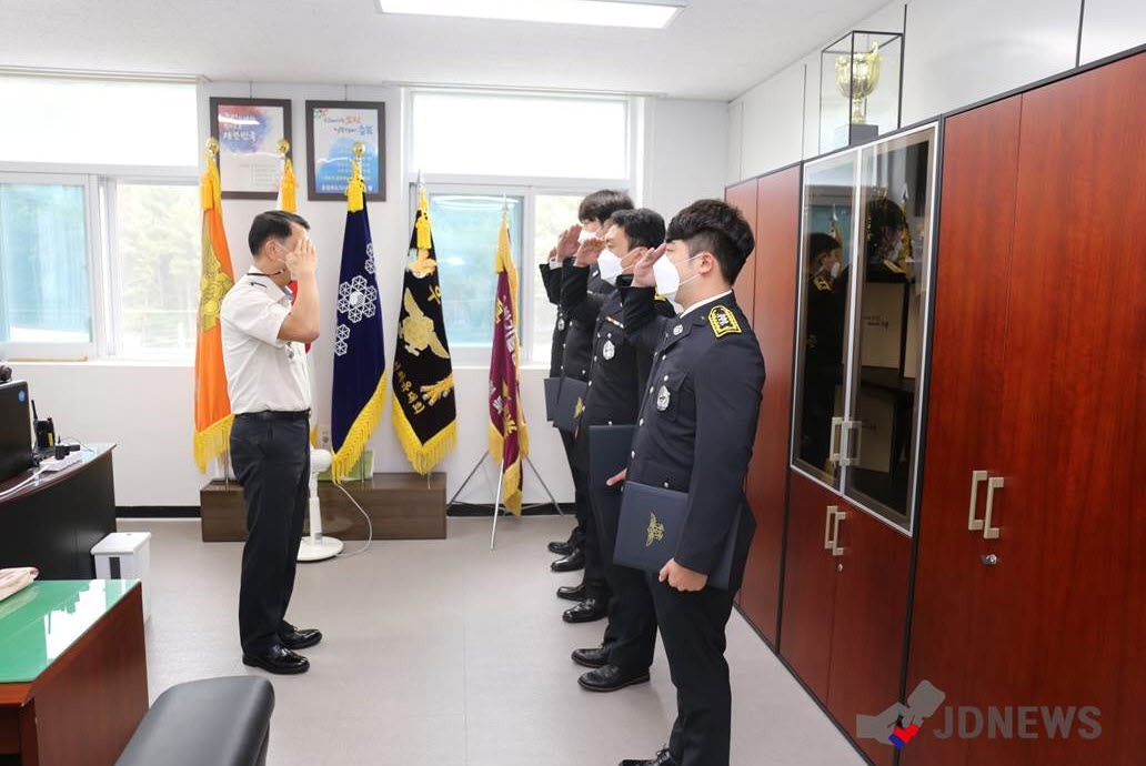 JD News 석의환 기자 = 충북 단양소방서 한정환서장은 1일 2층 서장실에서 1일자 도내 인사발령에 따른 승진 전입자와 전보자에게 인사발령 통지서를 수여했다.