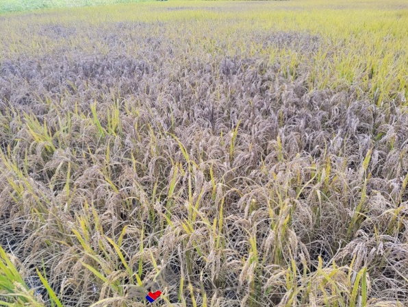 JD News 유소진 기자 = 충북 제천시 봉얍읍 인근 벼 수확을 앞둔 논이 깨씨무늬병으로 온통 불그스름하게 물들어가고 있어 농민들이 시름에 빠졌다.