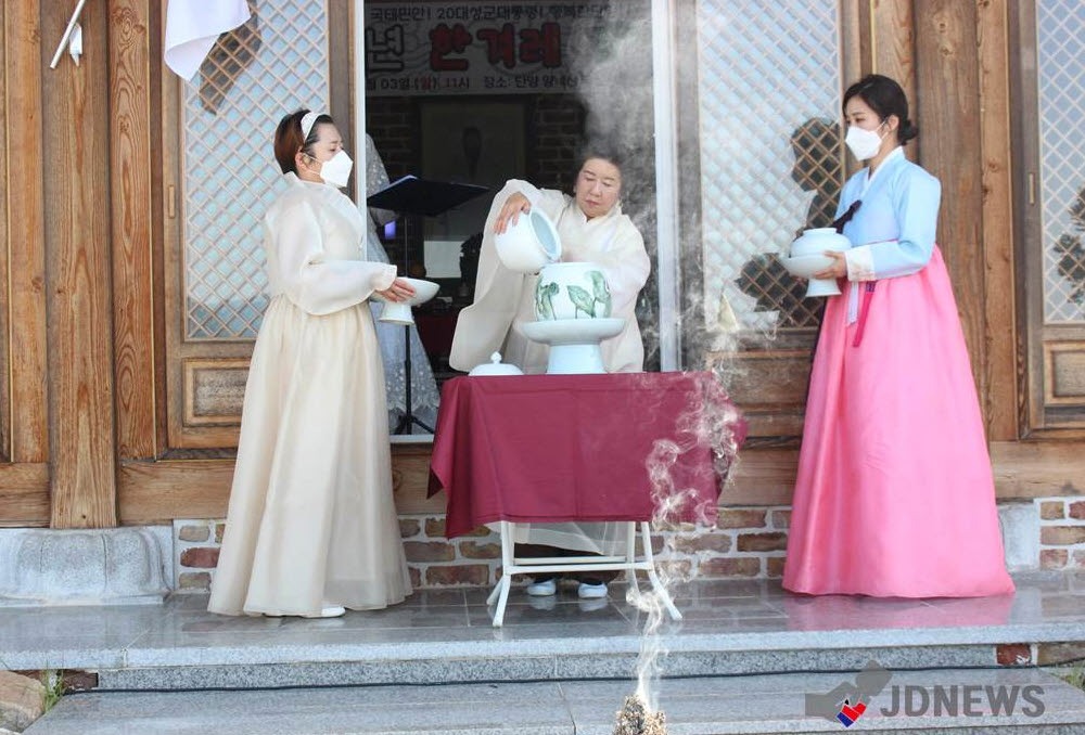 JD News 석의환 기자 = 3일 개천절을 맞이하여 양백문화재단(이사장 임선정) 주최로 충북 단양군 양백산 국선원 일원에서 ‘쑥나라! 단군나라! 대한민국!’ 이라는 제호 아래 단기 4354 신축년 한겨레 개천대제가 세계평화재단 주관 아래 봉행됐다.