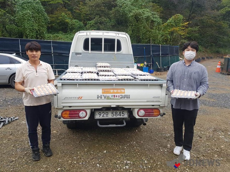 JD News 석의환기자 = 강원도 영월 백봉오골계농장에서 상동읍에 오골계알 6,000개를 기탁했다.