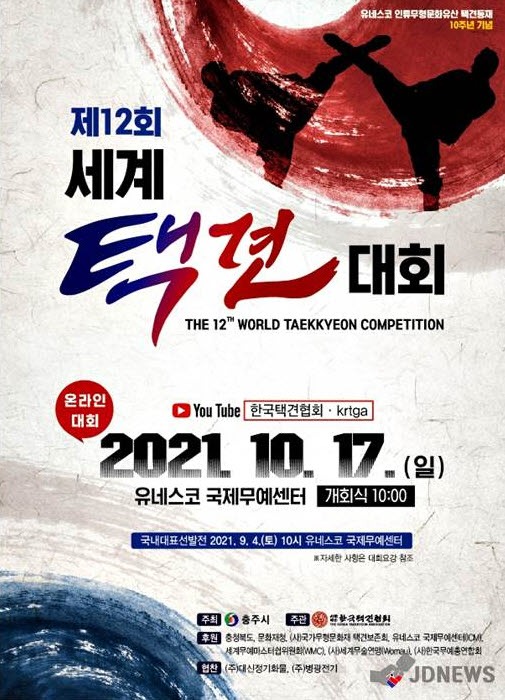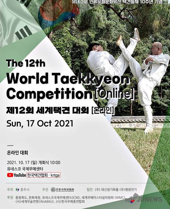 JD News 석의환 기자 = 충북 충주시 유네스코 국제무예센터 세계 택견인들의 한마당인 세계택견대회가 오는 17일 오전 10시부터 오후 5시까지 온라인으로 펼쳐진다.