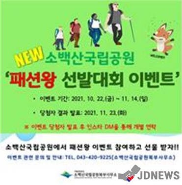 JD News 석의환 기자 = 국립공원공단 소백산국립공원북부사무소은 소백산국립공원 탐방객을 대상으로 ‘패션왕 이벤트’를 오는 10월 22일부터 11월 14일까지 23일간 시행한다.