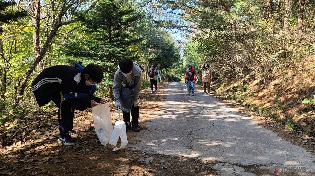학생들은 방역지침 준수하에 학급단위로 가을맞이 소백산 트레킹을 하면서 산길 주변의 쓰레기를 줍는 플로깅을 병행 실천하였다.