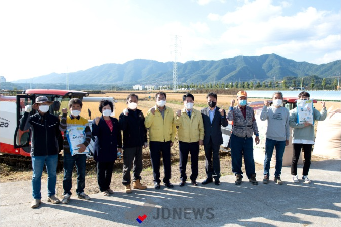 지난 20일에는 이상천 제천시장과 배동만 제천시의회 의장을 비롯하여 김병권 시의회 산업건설위원장, 이정임 시의원 등이 의림지뜰 친환경 벼 추수현장을 찾아 격려에 나섰다.