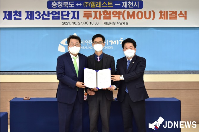 JD News 유소진 기자 = 충북 제천시가 오늘(27일) ㈜웰레스트와 165억원 규모의 제천 제3산업단지 공장신설 투자협약을 체결했다.