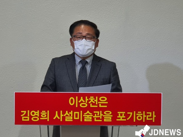 '이상천 제천시장은 김영희 사설 미술관을 포기하라'라는 성명서를 통해 미술관건립 추진을 중단하라고 요구했다.