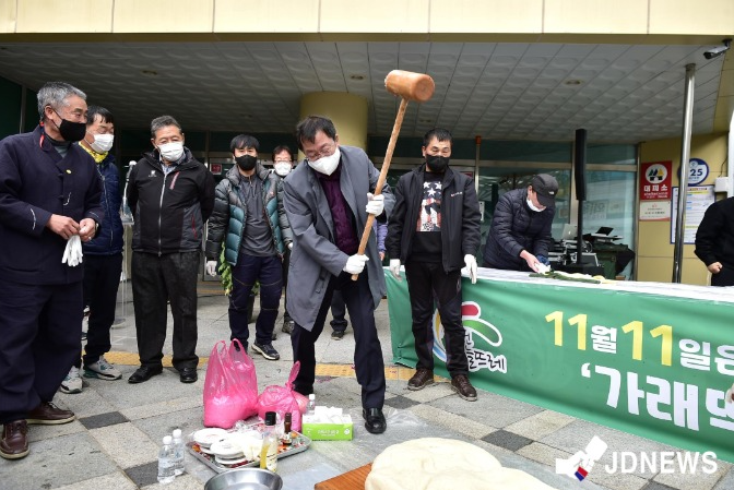 이날 행사는 제천시민과 함께 가래떡을 나누며 농업인의 날인 11월 11일을 기념하기 위해 기획됐다.