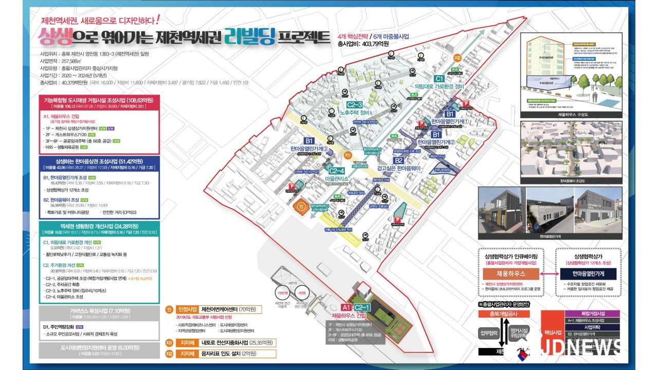 이 중 제천역세권 도시재생 뉴딜사업은 재정규모나 사업의 중요도 면에서 가장 비중 있는 재생사업이며, 제천시 관문 권역의 변화와 원도심과의 상권연결을 위한 거점 마련을 목표로 추진되고 있다.