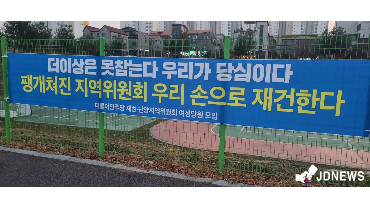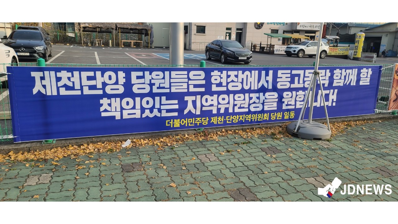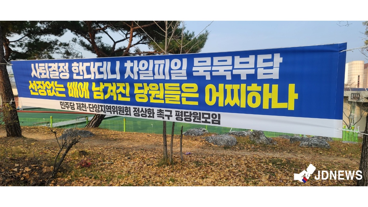 - 민주당 소속 당원들, 지역위원회의 정상화 촉구 서명 운동과 현수막 내걸어