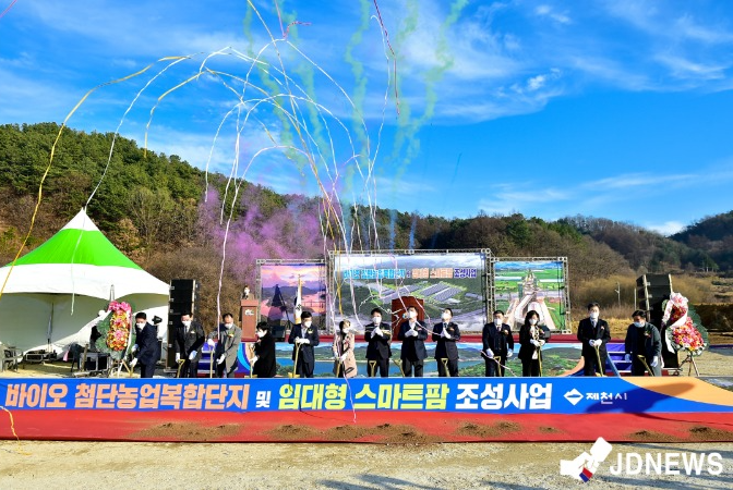이날 기공식은 충청북도 제안사업으로 충청북도와 제천시, 한국농어촌공사가 공동으로 추진하고 있는 바이오첨단농업복합단지와 임대형스마트팜 조성사업이다.