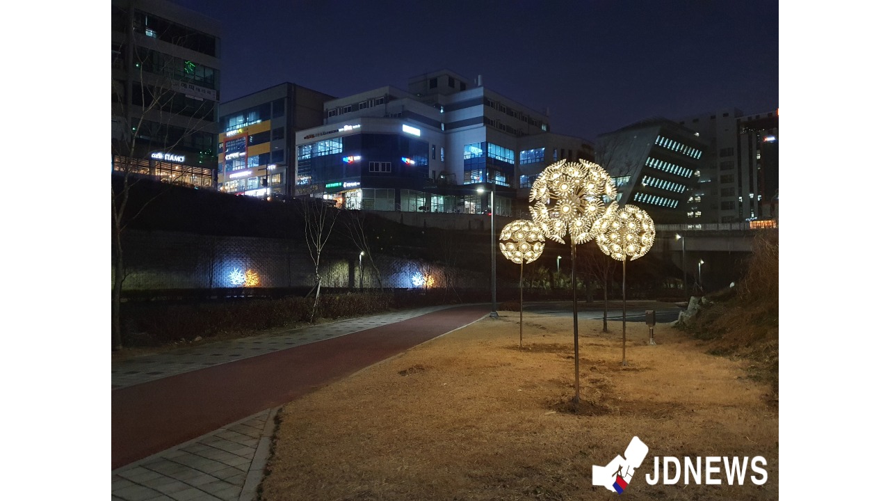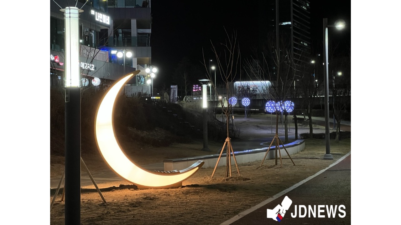 - 수변공원내 LED 가로수 및 민들레 조명, 초승달 벤치 포토존 조형물 설치