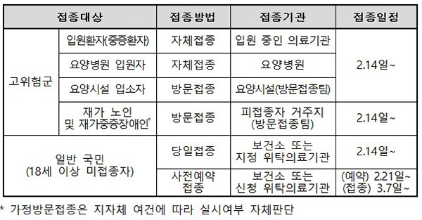 - 중증·사망 위험 높은 입원환자, 재가 노인, 재가 중증 장애인 등 대상으로 먼저 접종