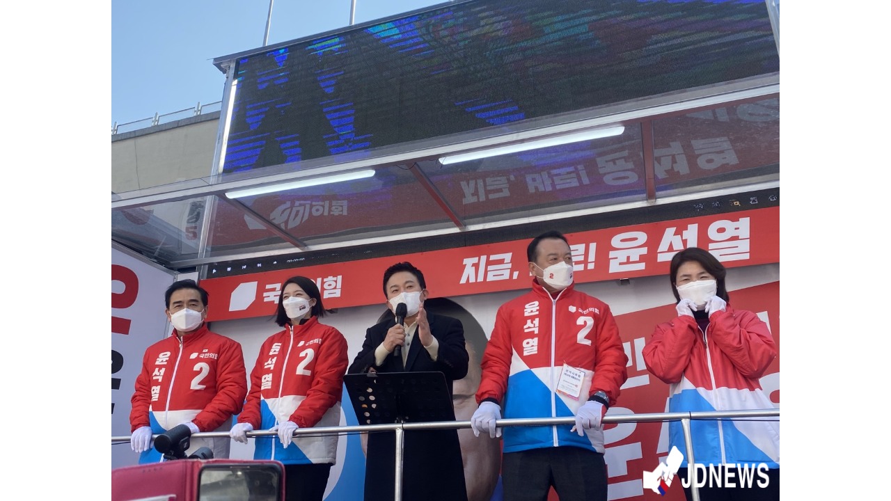 3일 오후 1시경 시작된 국민의 힘 유세현장은 윤 후보를 지지하는 시민들로 인산인해를 이루기도 했다.