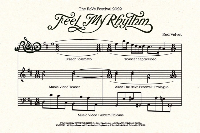 금일(7일) 0시 레드벨벳 각종 SNS 계정을 통해 공개된 스케줄 포스터에는 새 미니앨범 ‘The ReVe Festival 2022 - Feel My Rhythm’(더 리브 페스티벌 2022 – 필 마이 리듬)과 관련된 다채로운 콘텐츠 오픈 일정이 담겨 있어, 컴백 기대감을 증폭시켰다.