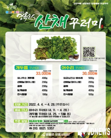 강원 영월군이 지난 4일부터 5월 초순까지 영월의 봄을 담은 산채꾸러미 세트 2종의 판매를 시작했다.