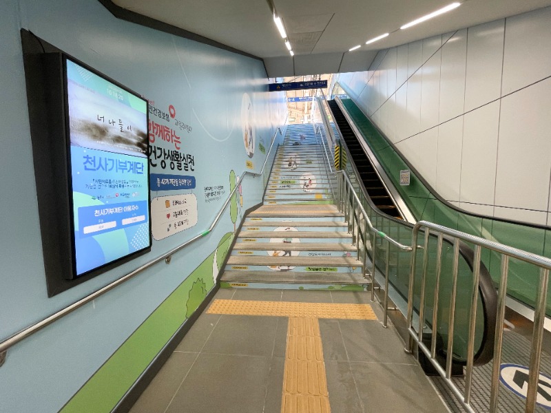 천사기부계단을 오르면 1인당 10원씩 적립되며, 연간 최대 1,000만 원까지 후원금이 적립된다.
