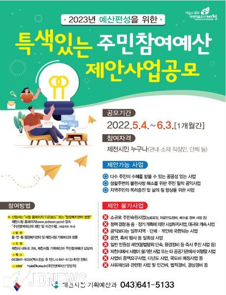 충북 제천시는 2023년도 특색 있는 예산편성을 위한 주민제안사업 공모에 나섰다.