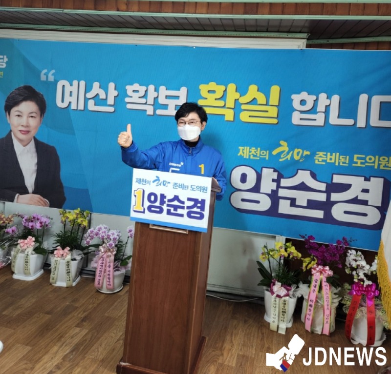 14일 오전 충북 제천시 제1선거구 더불어민주당 양순경 도의원 후보 개소식이 열렸다.