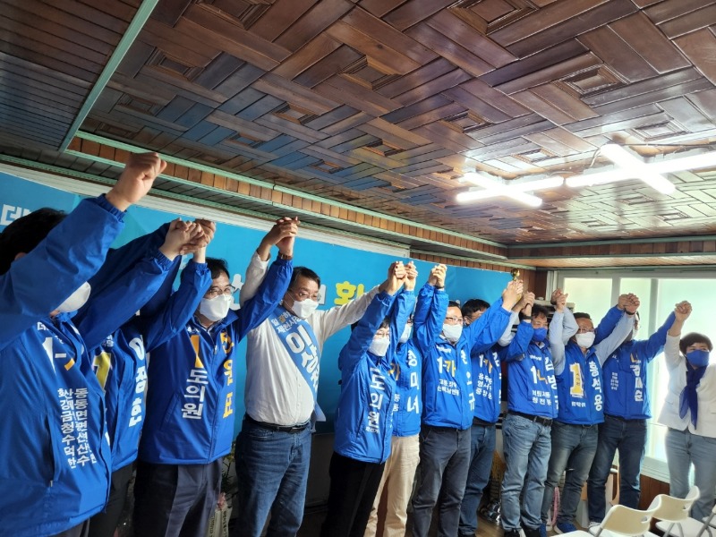 한편, 같은 날 오후엔 제1선거구 국민의힘 김꽃임 도의원 후보도 선거사무소 개소식을 열고 도의원 후보 경선 경쟁 상대였던 박준규 후보와 원팀을 이루고 이날 개소식의 사회를 맡아 이목을 받은 것으로 알려졌다.