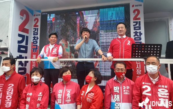 오는 6.1 전국 동시 지방선거 사전투표 첫날인 27일 오후 2시경 국민의힘 이준석 당대표가 충북 제천시를 방문해 김창규 제천시장 후보를 총력 지원했다.