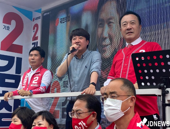 제천시민의 민심을 잡기 위해 지난 25일 김기현 국민의힘 공동선거대책위원장에 이어 이날 지원 유세에는 이준석 당대표가 시민들을 직접 만나 김창규 후보 지지를 호소했다.