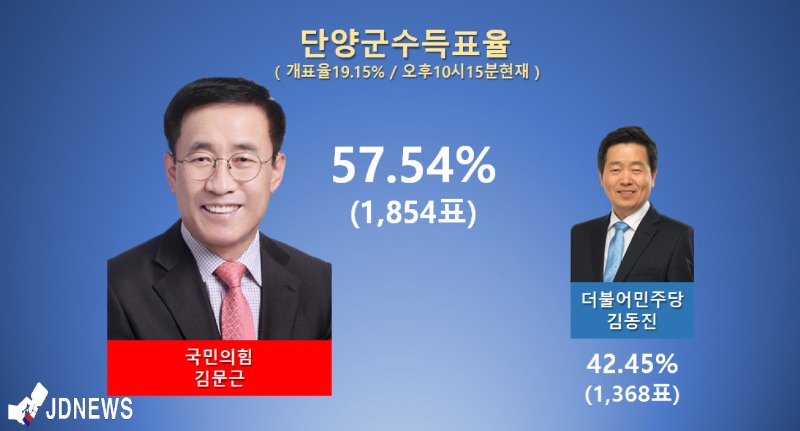 단양군수 선거 밤 10시 15분 현재 개표진행 상황 유소진 기자 발행 2022-06-01 22:17 Facebook Twitter band 네이버블로그 카카오스토리 카카오톡 글자작게 글자크게 ▲ JDnews 류기복 디자이너 <저작권자 ⓒ JD뉴스코리아, 무단 전재 및 재배포 금지> 유소진 기자 다른기사보기
