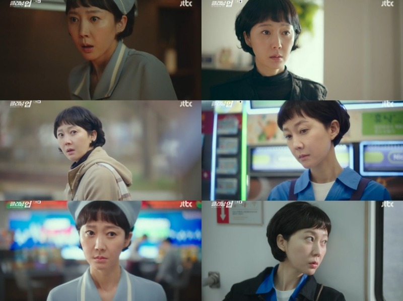 ‘클리닝 업‘ 첫 회에서는 두 딸의 생계를 책임지기 위해 미화원부터 편의점 아르바이트, 가사 도우미까지 다양한 직업을 소화하고 있는 용미의 이야기가 그려졌다.