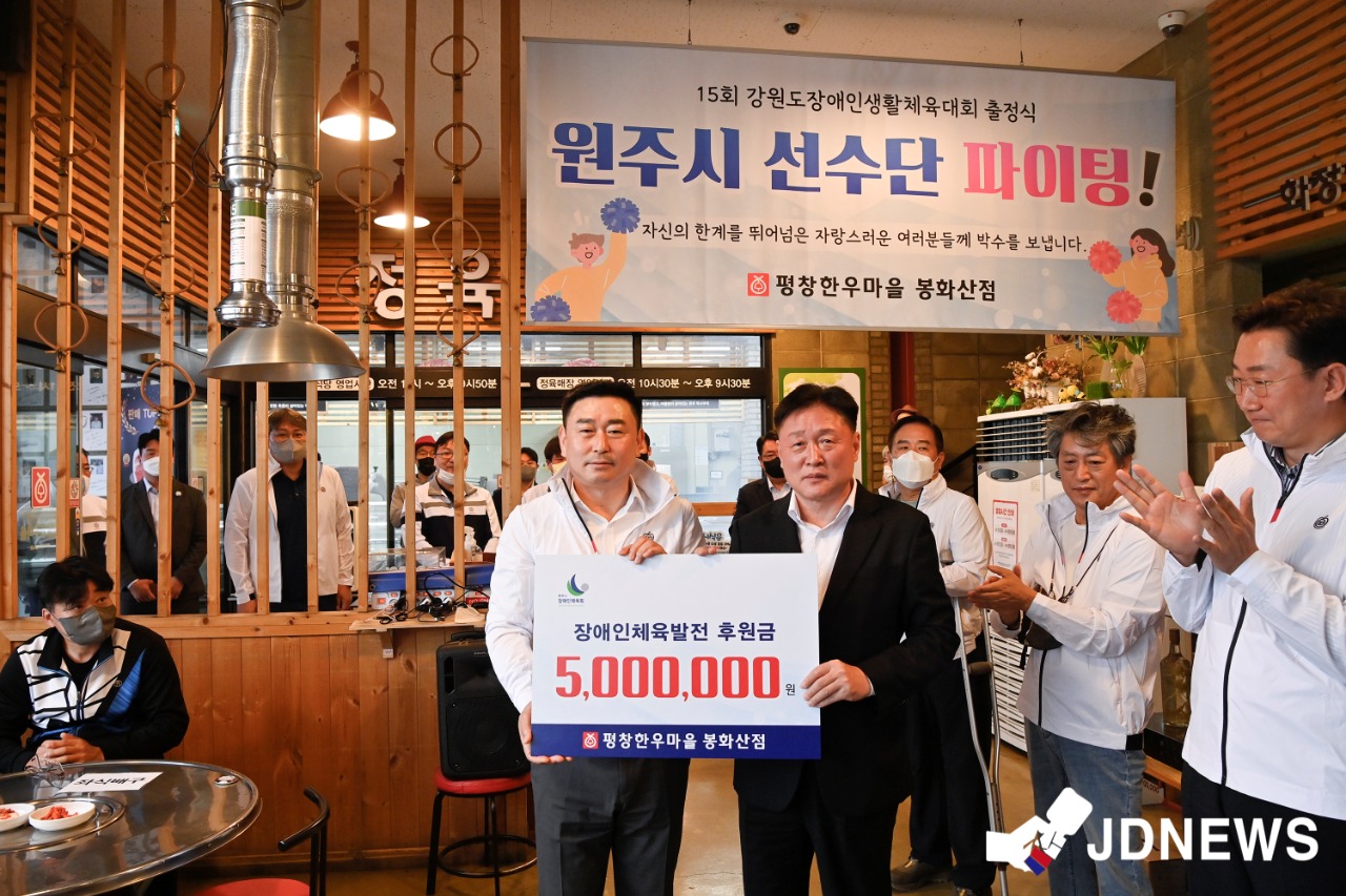 최일락 대표는 장애인 생활체육 발전을 위해 꾸준히 선수단 격려 오찬을 제공해왔으며, 올해도 장애인체육발전기금 500만 원을 원주시에 전달해 훈훈함을 더했다.